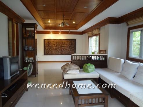 - ชั้นบนปูด้วยไม้หน้าสี่ขัดมันสวยงาม พร้อมตกแต่งไม้สไตล์บาหลี